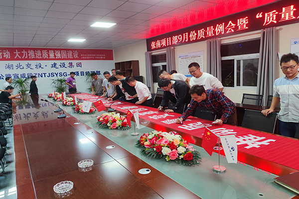9月2日,张南二期项目联合张南一期项目部开展9月份质量例会暨“质量月”活动启动仪式,宣贯学习鄂西公司、相关文件,对上月质量问题进行了通报及对存在的问题提出了合理整改意见,宣读了质量月活动方案,举行了活动启动签字仪式。此次活动旨在通过一二期项目高度融合、凝心聚力、齐抓共管,全面加强质量管控,推动质量变革创新,打造百年品质工程。