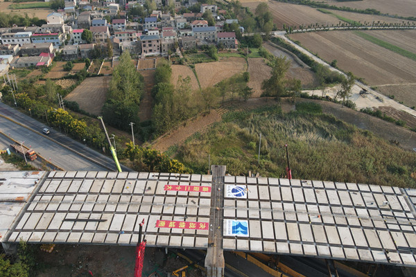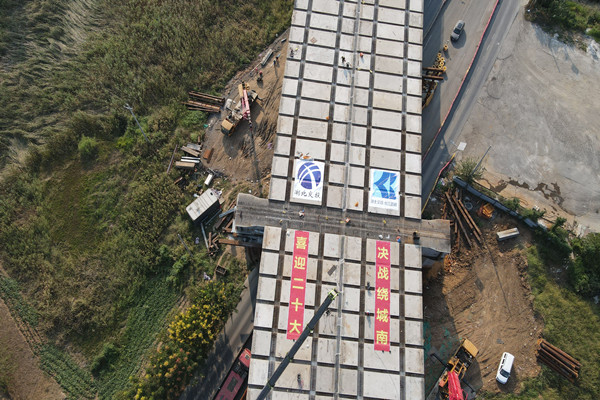 新207国道大桥主桥设计为2*58米钢混叠合梁,上跨襄阳市新207国道,具有桥跨长、交通流量大、安全风险高、施工难度大的特点。自8月12日最后一节钢箱梁架设完成后,项目部领导坚持现场带班作业,锚定年底通车目标,细化任务、精心组织,数十名工人在桥面各个作业点身影交错叠现,有条不紊地进行着防撞护栏安装、钢筋绑扎,人、车、机来往穿梭,全体参建人员上下一心,严守质量安全红线,保证了施工安全快速推进,有力地推动了桥面板吊装顺利完成。